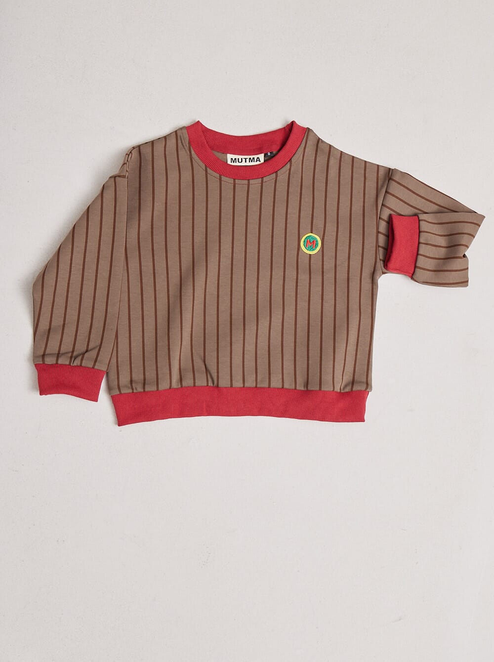 buzo confeccionado en algodón, cómodo y abrigado. corte básico y diseño a rayas con puños de colores, terminado con logo bordado en tipografía retro en el pecho.