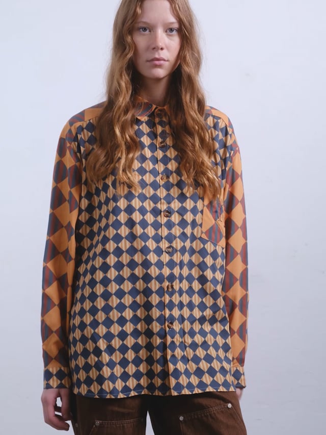 camisa multiloca en tonos tierra, MUTMA ocia.