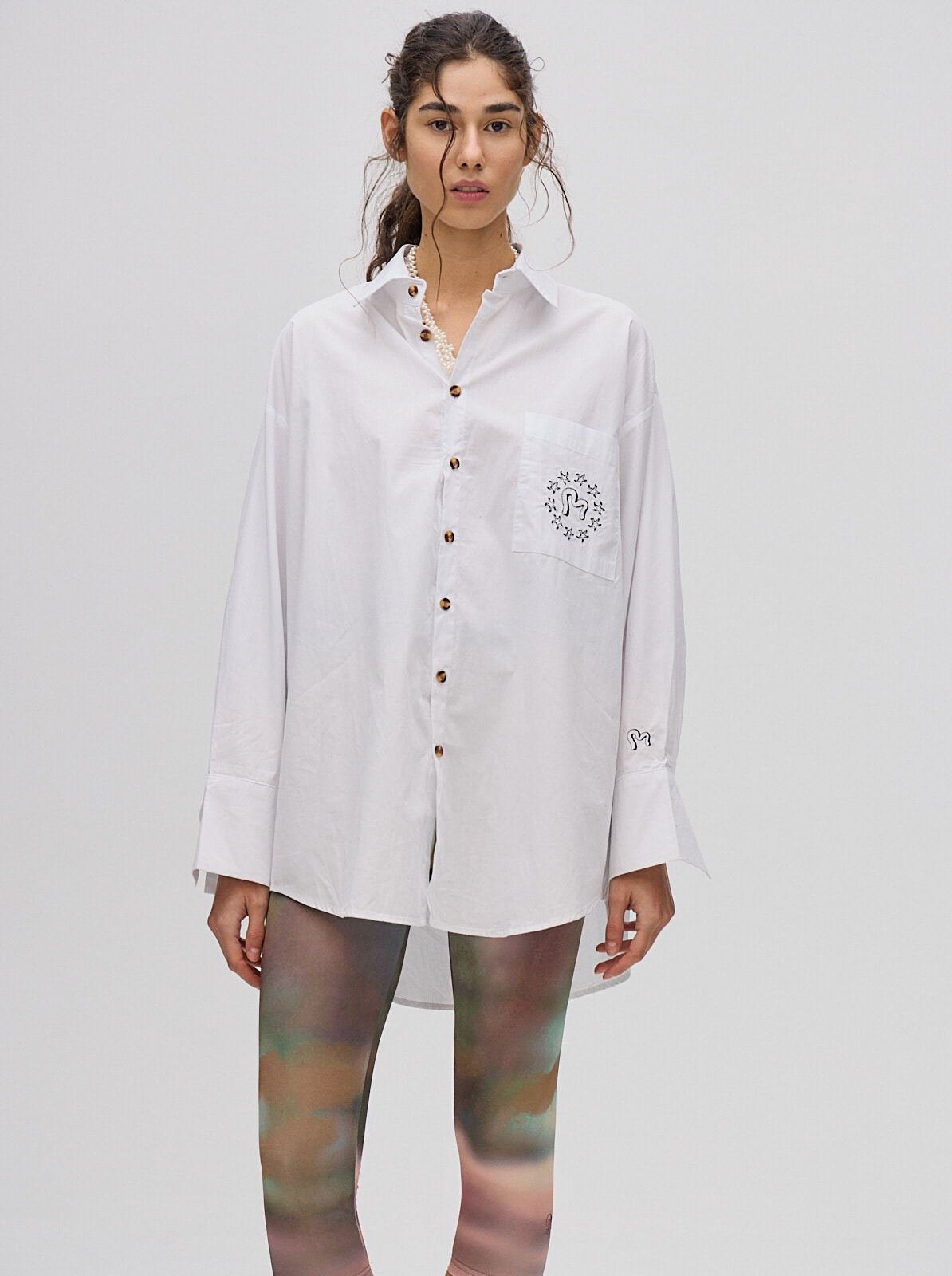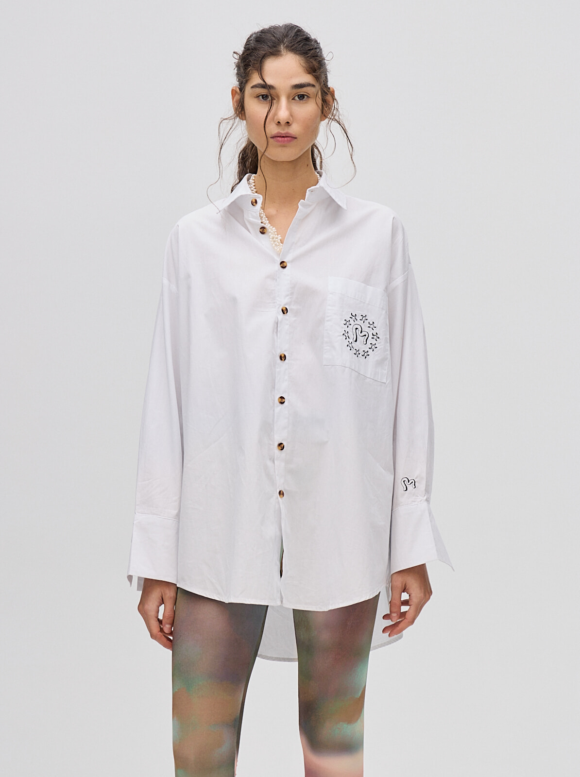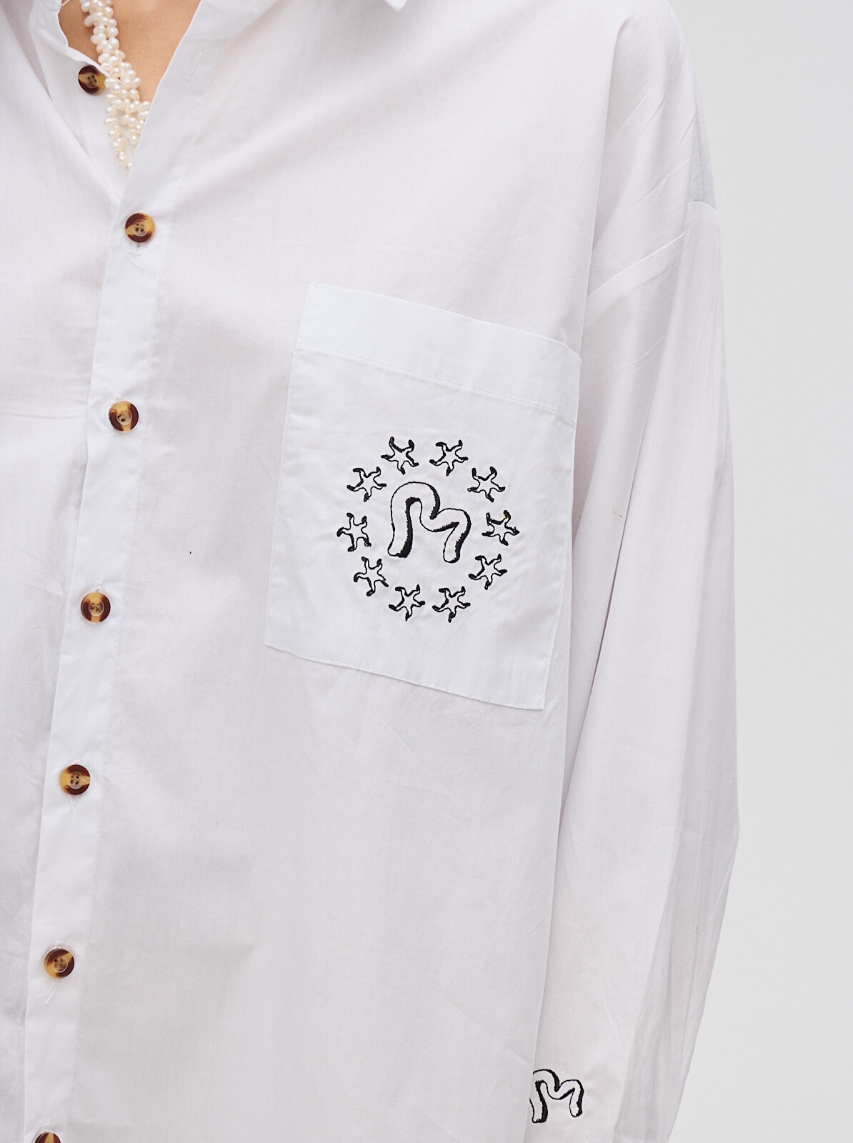 corte holgado con caída favorecedora, bolsillo cuadrado en la parte delantera con logo MUTMA bordado.