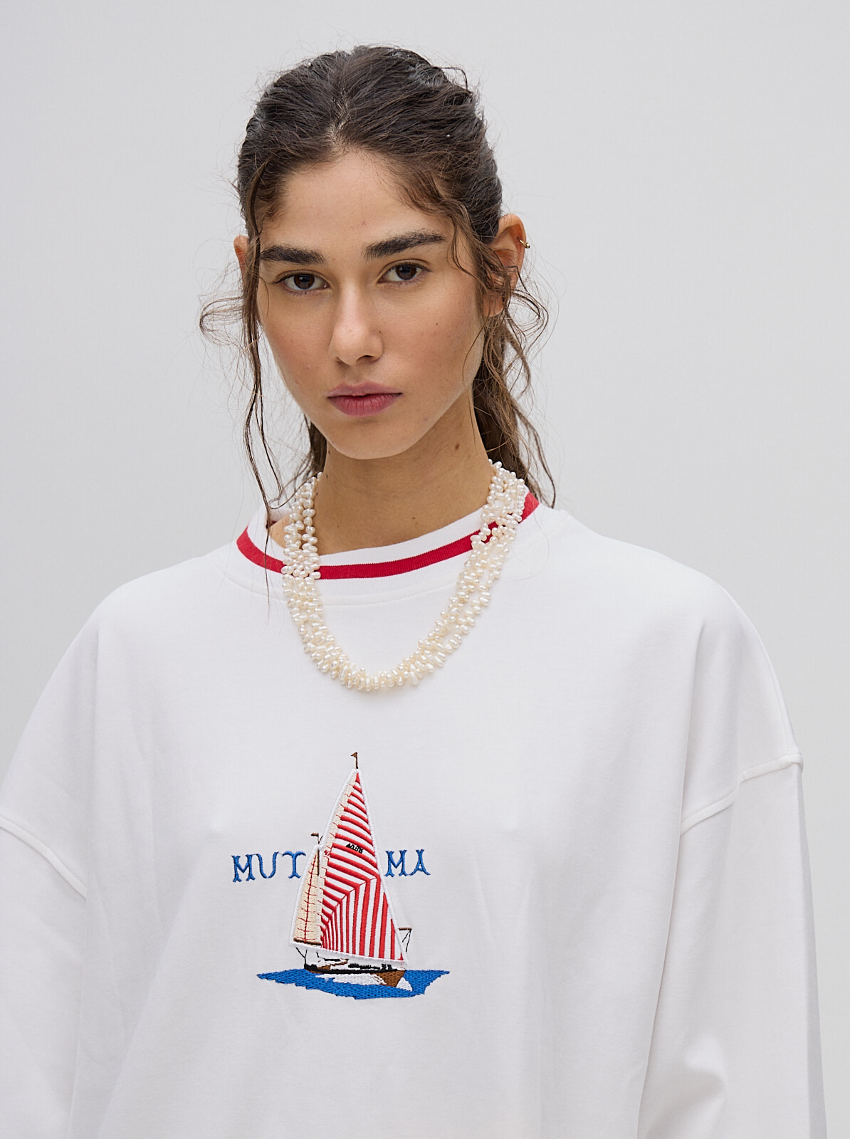 la carta comodín del verano, el buzo costero y básico MUTMA sayonara. la etiqueta de atrás no lo aclara, pero se dice que te va a salvar en los atardeceres de playa.